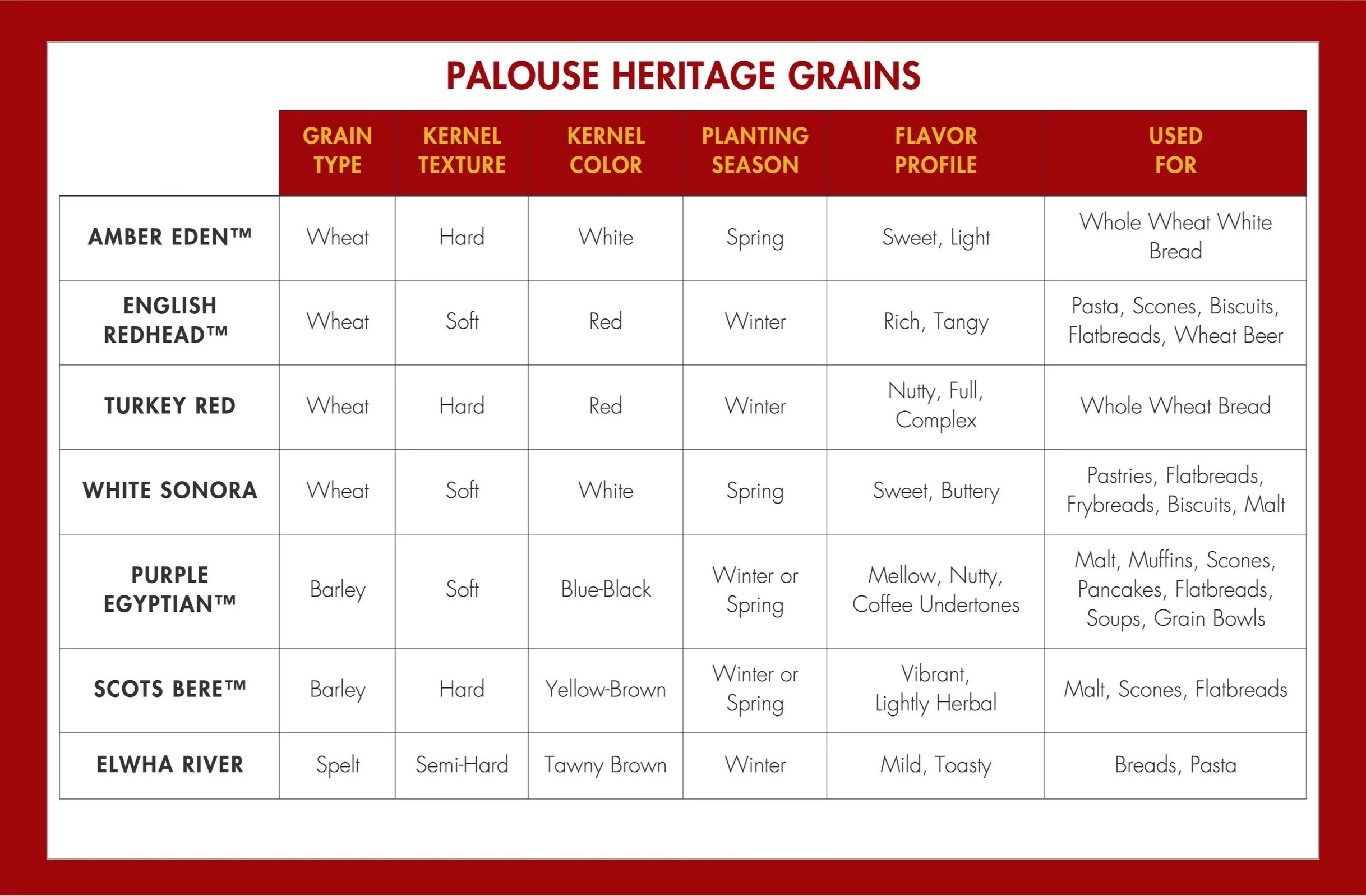 Palouse Heritage grains provide extraordinary flavor and nutrition for baking and brewing. Grown in the rolling hills of Washington’s Palouse region, our heritage varieties are cultivated using regenerative farming practices that restore the soil, nurture biodiversity, and protect the environment. Every harvest is non-GMO and free from harmful chemicals, so you can bake and brew with grains that are as good for the land as they are for your table.